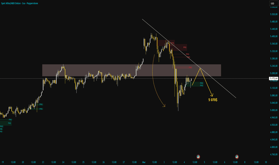 Fiyat 5.220-5.250 bölgesini geri kazanamaz ve azalan trend çizgisinin altına düşerse, 5.070 dolar civarındaki alt likidite bölgesine doğru uzanma senaryosu daha olasıdır.