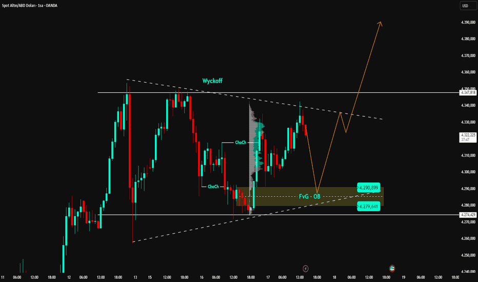 • FVG – OB (Alım Bölgesi): 4,290.899 – 4,279.641 → fiyatı çeken birleşim bölgesi, onay geldiğinde ALIM öncelikli.