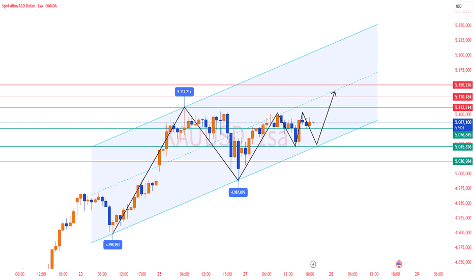 Kısa vadede önemli seviye 5100$ !!! Bu eşik aşıldığı anda ilk hedef 5130$-5150$ bölgesi, ivmemin armasıyla 5250$ hedef olacak !!!