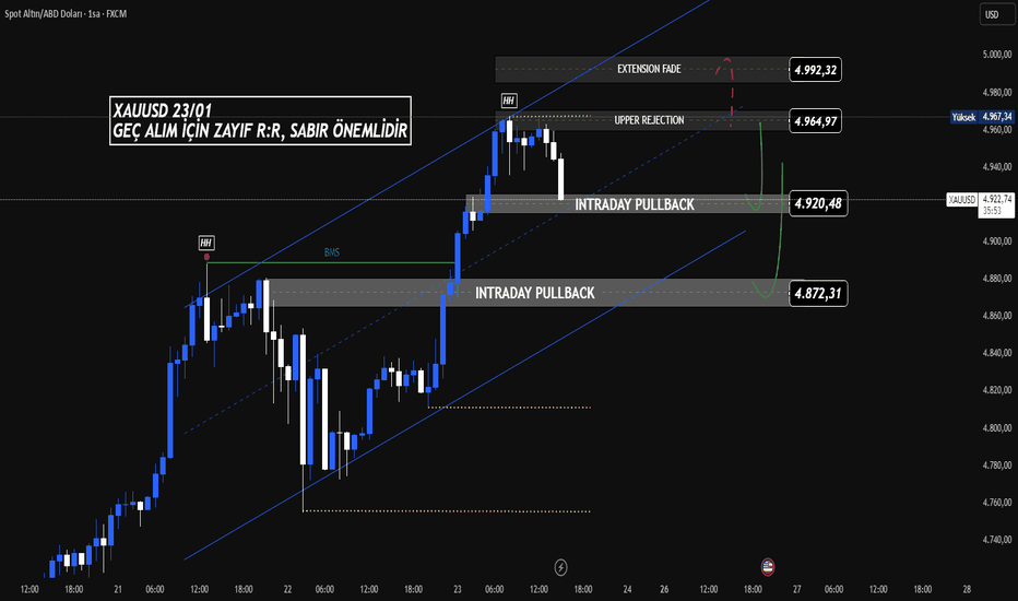 XAUUSD 30/01 – LİKİDİTE RESET, FOMO YAKIT OLURAltın, tek bir hareketle neredeyse 400 puan düştü. Sabah güçlü bir toparlanma yaşandı, öğle saatlerinde tekrar satıldı - bu normal bir geri çekilme değil. "ESKİ TRENDİ AL" diye düşünen herkes büyük para akışına karşı çıkıyor.
