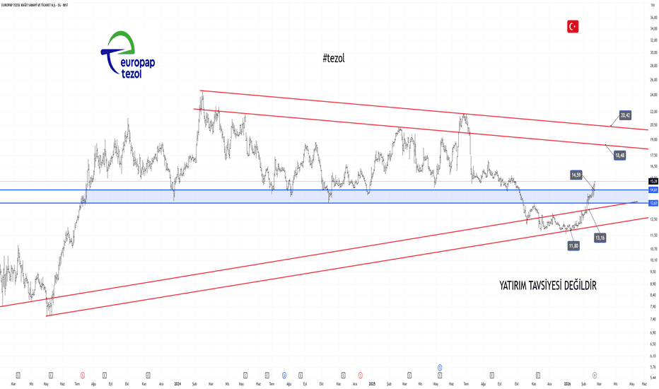 Tezol Europap Kağıt Sanayi Hissesi İncelemesiTezol Kağıt #tezol teknik olarak incelediğinde 14,59 üzerine çıkması haftalık olarak grafiğin kırılımı tamamladığını ve bundan sonraki durumlarda yükseliş hareketlerine devam edeceğini göstermektedir. 14,59 altına inmesi durumunda da tam aksine düşüş başlayacaktır.