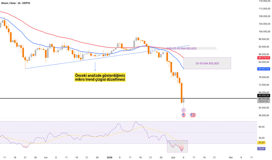 68400/62000 bandına kadar geri çekilmesi ve burada harmonik deseni tamamladıktan sonra 135000/150000 hedefine yükselmesi beklenir.