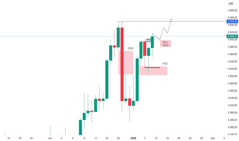 GOLD (XAUUSD) - TEKNİK ANALİZAltın, yükselen trend içinde 4.561 direncini güçlü hacimle kırdı ve bu seviyeyi destek haline getirdi. Kısa vadede fiyat, kırılım sonrası yukarı yönlü devam sinyali veriyor. 4.595–4.610 bandı ilk hedef bölge; bu alan üzerinde kalıcılık sağlanırsa 4.640 gündeme gelebilir. Olası geri çekilmelerde 4.561 üzerinde tutunma, trendin sağlıklı devamı için kritik. Bu seviyenin altı kısa vadede 4.474’e doğru düzeltme riski yaratır.