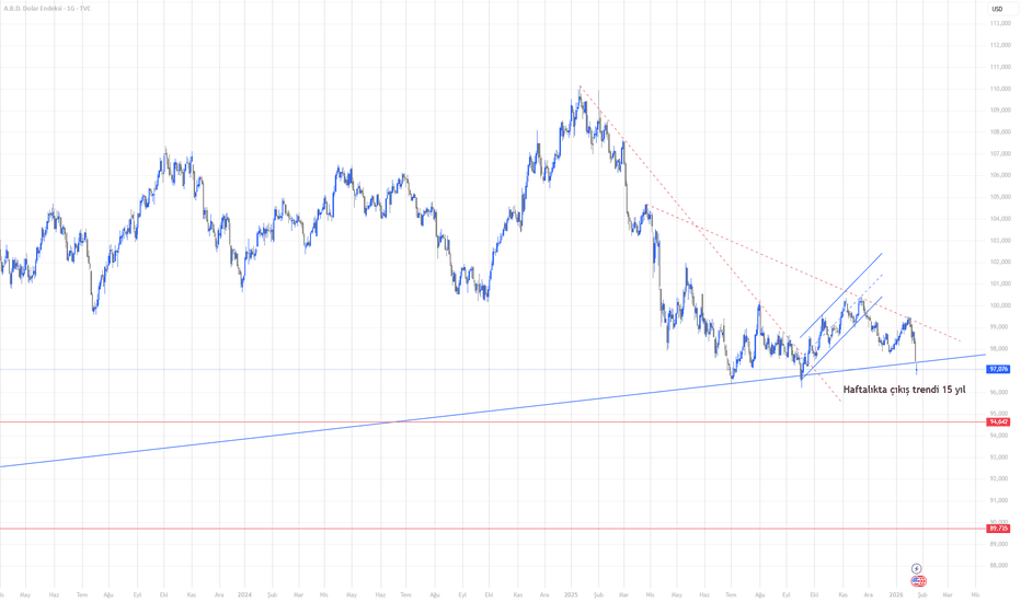 DxyDolar endeksiyle ilgili bir önceki analizimizde, endeksin dirençlerin kesiştiği bir bölgede bulunduğunu vurgulamıştım. Nitekim bu bölgeden gelen satışlarla birlikte mumların geri çekildiği ve fiyatın destek bölgesine yakın seviyelere gerilediği görülüyor.