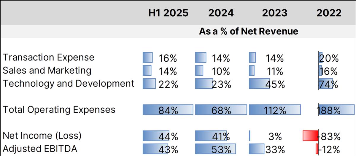 In terms of expenses, transaction expenses, sales and marketing and technology impact on revenue are at three-year lows all together.