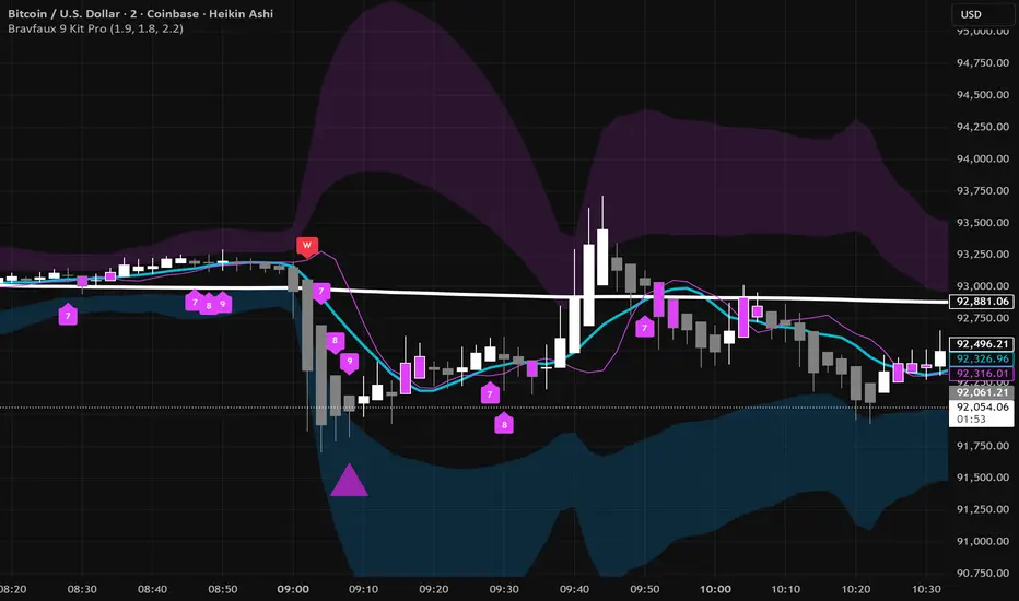 Bravfaux 9 Kit Pro — The Cleanest, Meanest, Purple-Drenched Trend & Reversal System on Trading ViewBuilt from the ground up for traders who want zero lag, crystal-clear signals, and that signature purple aesthetic. (Fully customizable to your liking of course!)