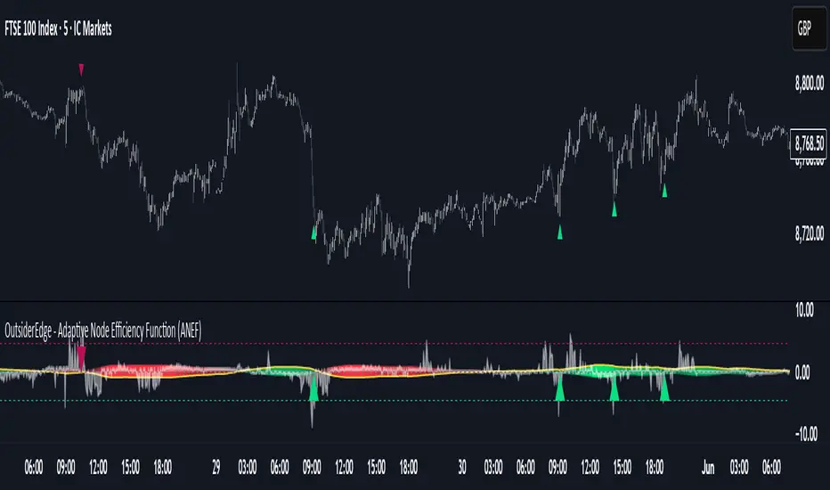 v1.0 — Initial invite-only release with: normalized ANEF core, Efficient/Inefficient zones, optional EMA trend context, 2nd-signal confirmation, raw & confirmed alerts, and optional price-panel markers via force_overlay.
