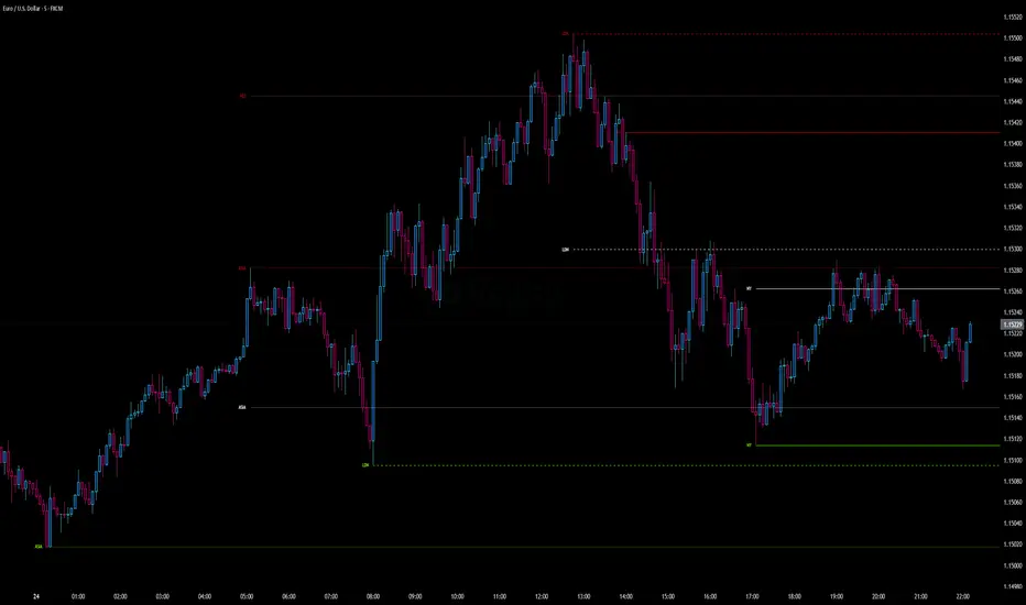 This indicator is designed to streamline intraday trading by clearly marking essential pivot points and session-based levels, significantly improving traders' market context and decision-making accuracy. Can be used to enhance SMT decision making when scalping killzones.