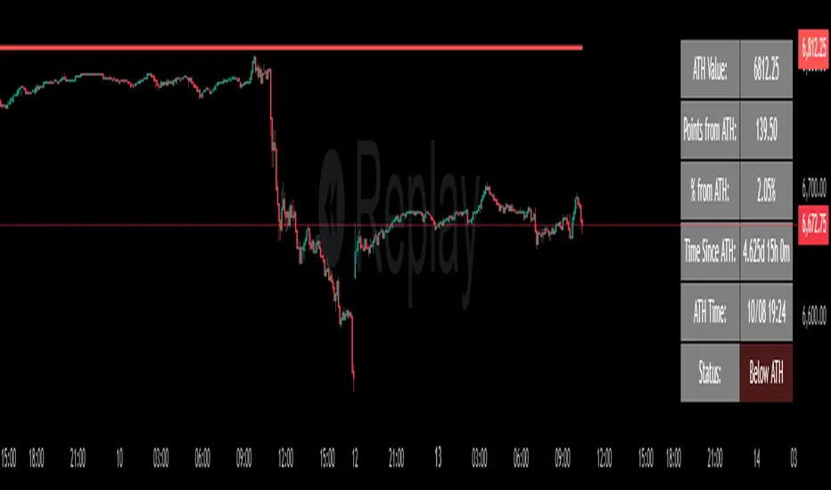Time-based metrics showing duration since last ATH (days, hours, minutes, seconds)