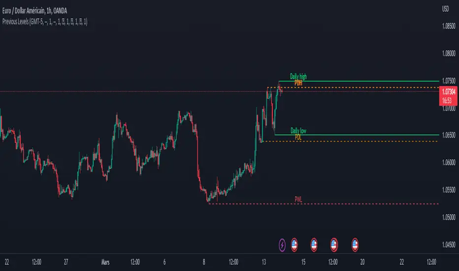 The Previous Levels With Custom TimeZone indicator shows to users specifics price area which can be liquidity to take.