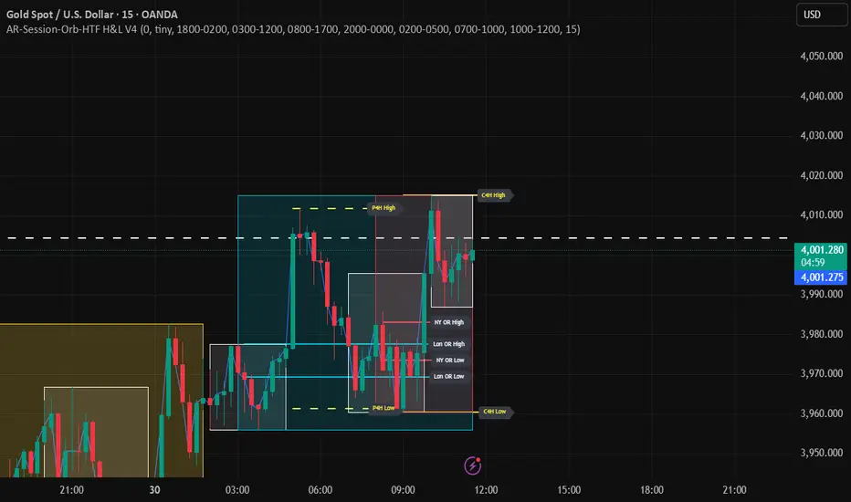 o Current 4H high/low is only drawn across the CURRENT 4H candle as it forms.