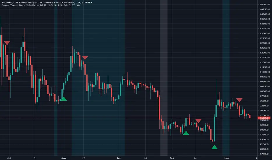 This is an alerts script for my Super Trend 2.0 indicator. It is intended as a companion script so you can backtest using the Strategy script and generate alerts using this Study script.