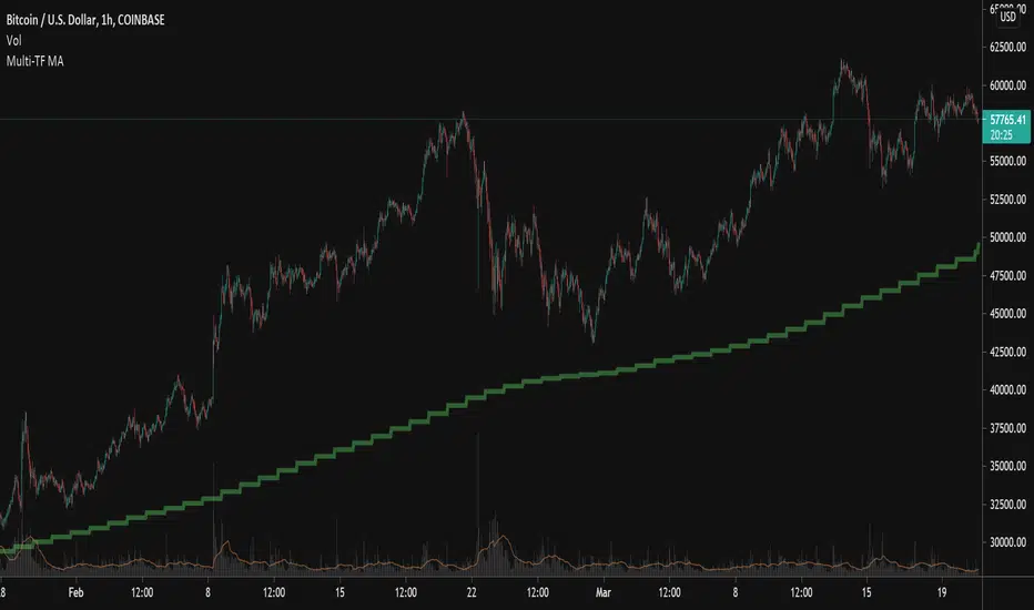 This indicator allows you to view a moving average (EMA or SMA) of your choosing on other time frames than what you are currently on.