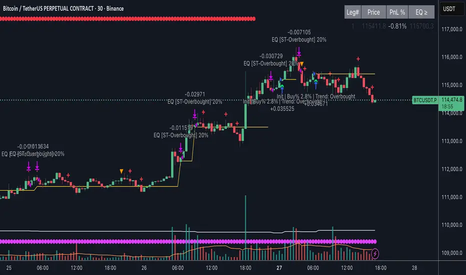 fixed an error on the calculation of the % sell of EQ legs. fixed that and adjusted sell % for overbought. we sell 20% of each leg on all trends except Bearish where we sell 100%. We also do not buy during Weekly Bear Trend and daily Neutral, Bearish and Overbought trends.Sürüm Notları