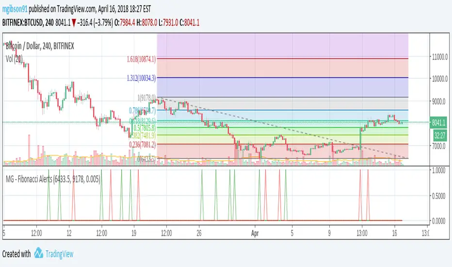 This script allows a user to get alerts when the price goes within a certain percentage threshold of a Fibonacci level.