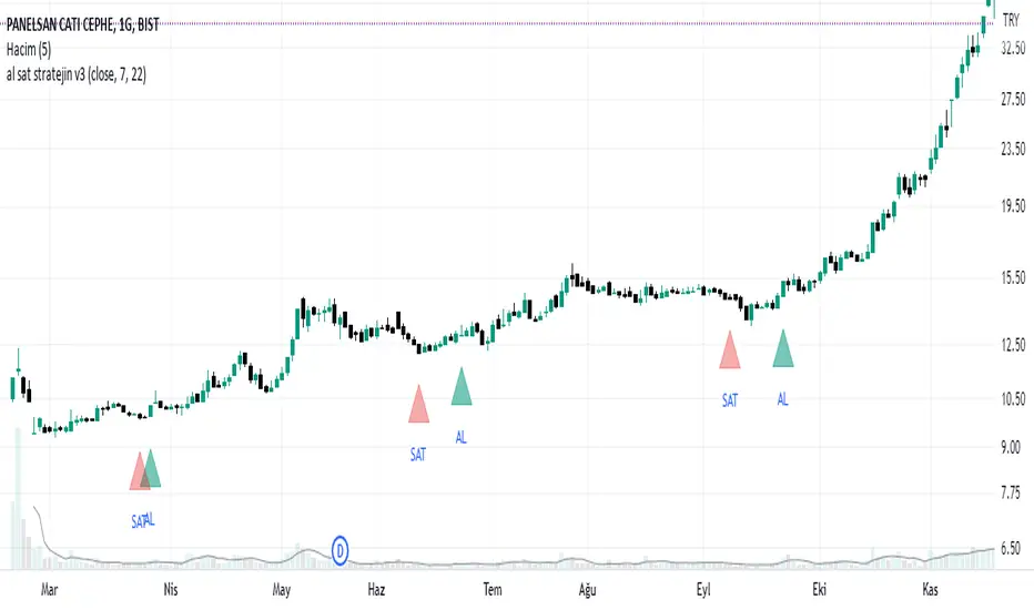 ema7 ile ema22 kesişimlerinden al sat sinyalleri üretebileceğiniz gibi farklı kombinasyonlarla istediğiniz hisse veya coinde en ideal değerlere ulaşabilirsiniz.