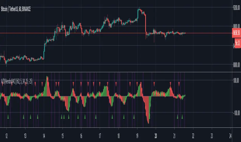 - “Activate less noise mode” default: FalseUses a proprietary way of averaging values in price. This creates an entirely new indicator in itself. Can be very useful for trading the lower timeframes. It is however advised to understand that enabling this settings will not make the indicator the “standard A/D // AC” anymore.