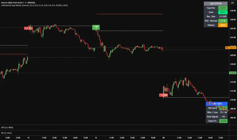 Real-Time Backtest Analytics: We have integrated a "Fade Stats" engine that tracks the historical win rate of the gap-fill strategy specifically on the asset you are viewing.