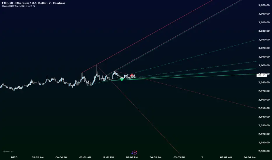 QuantRX Trendlines v1 is a visual market structure indicator designed to automatically draw trendlines and channels based on recent swing highs and lows.