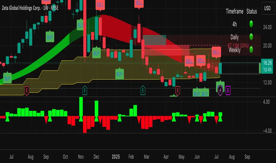 ● Customizable smoothing, oscillator period, and timeframe inputs.