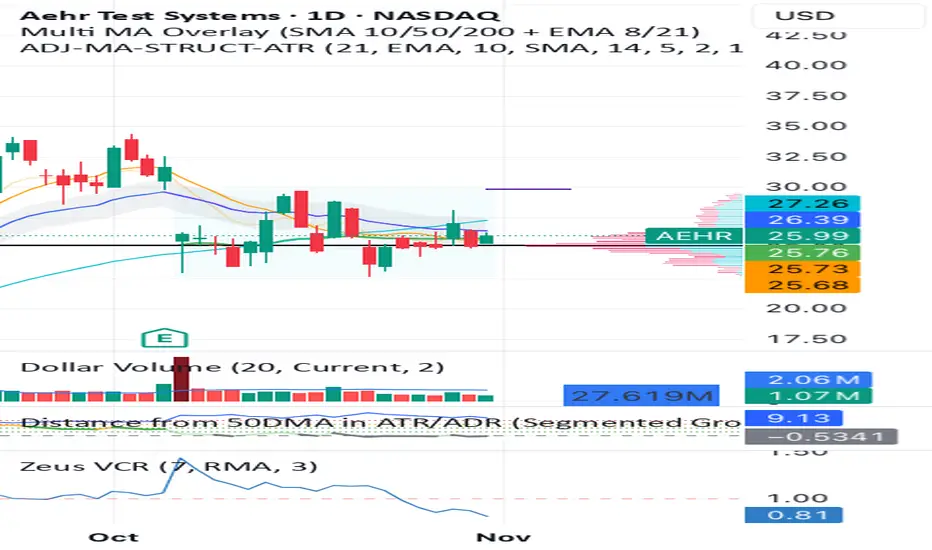 Distance from 50DMA in ATR/ADR (Segmented Growth Stocks)