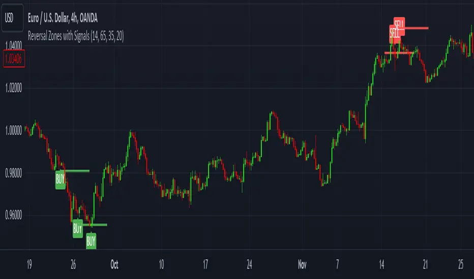The "Reversal Zones with Signals" indicator is an advanced technical analysis tool designed to help traders identify potential market reversal points. By integrating Relative Strength Index (RSI), moving averages, and swing high/low detection, this indicator provides traders with clear visual cues for potential buy and sell opportunities.