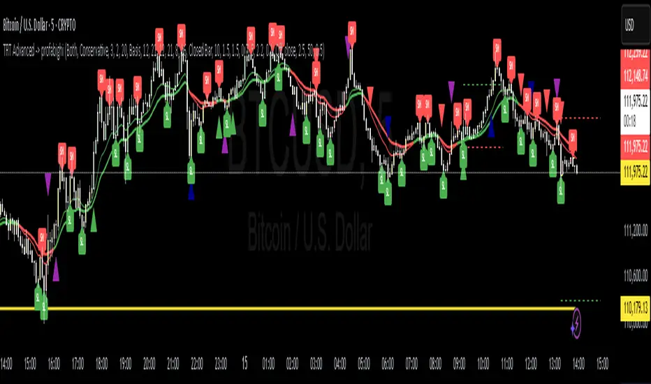 The Trading/Range Tracker Advanced is a sophisticated breakout trading system that combines swing-based structure detection, impulsive candle filtering, and market condition analysis. It dynamically identifies ranging versus trending environments, validates entries with EMA trend confirmation, and offers flexible execution modes including a Sniper Mode for precision entries on explosive price movements.