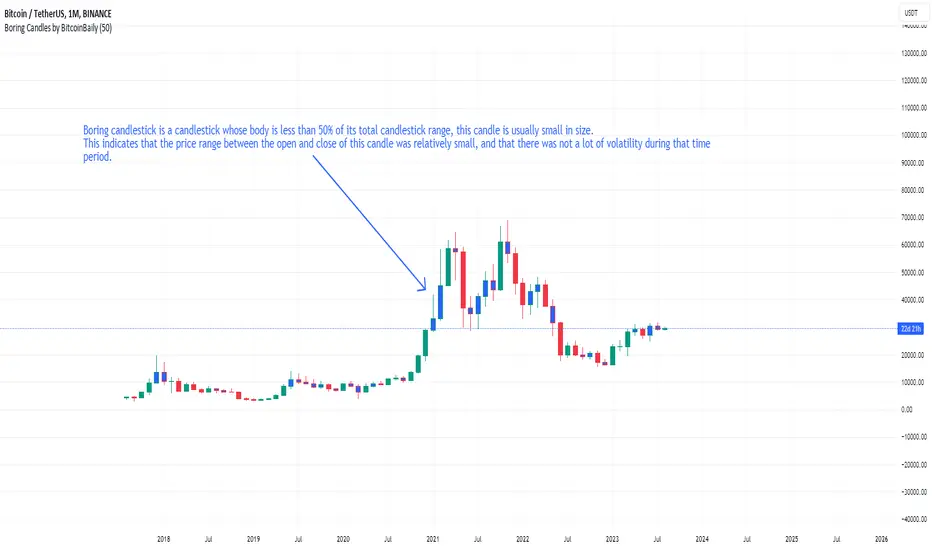 Boring candlestick is a candlestick whose body is less than 50% of its total candlestick range, this candle is usually small in size.