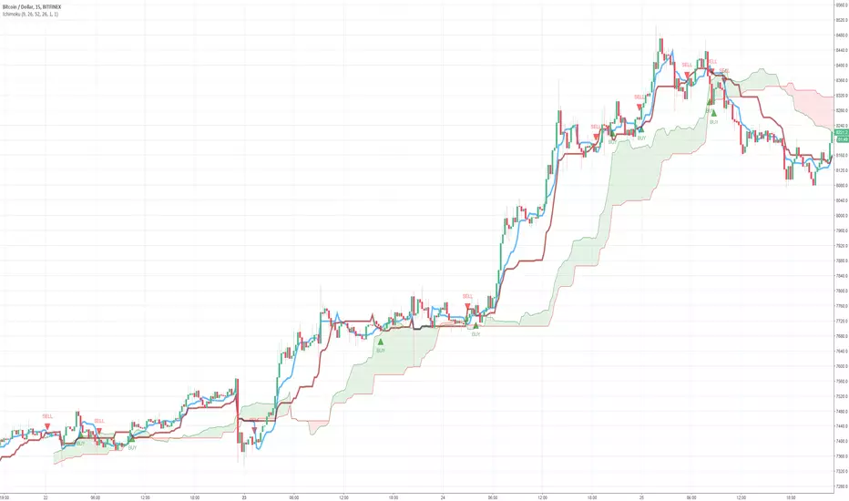 - Buy when price crosses over Conversion Line: Buy when price crosses over conversion line (could happen below, inside or above the cloud).