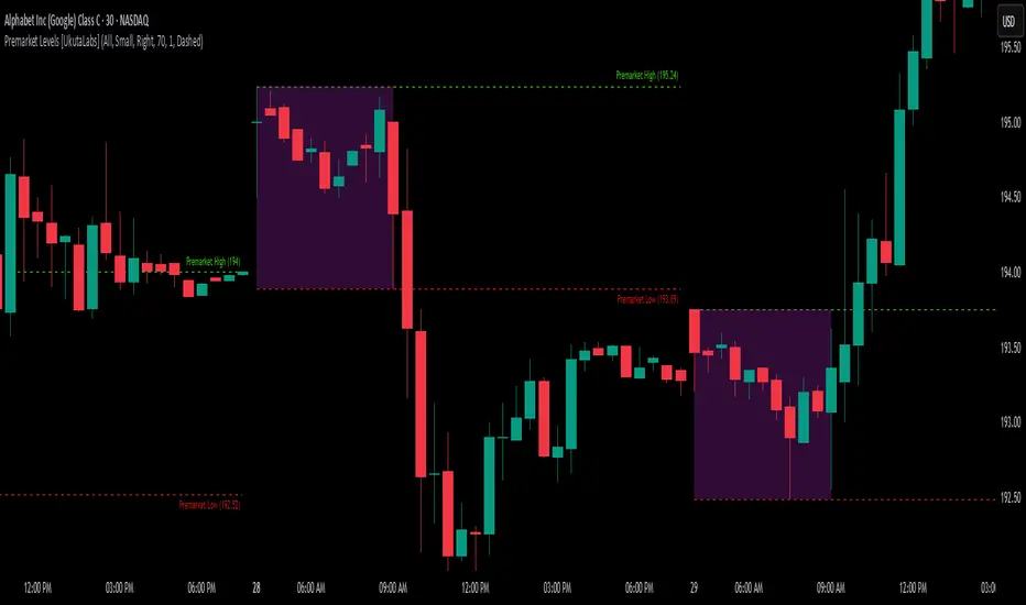 The Premarket Levels indicator measures the premarket high and low of any given market. The Premarket Levels creates potential strong resistance and support levels based on the premarket high and low which traders can use to gauge the market outlook ahead of the regular open.