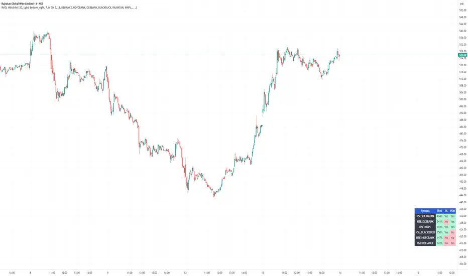 RVOL Watchlist is an intraday watchlist-style monitoring tool that tracks Relative Volume (RVOL) across multiple symbols and enriches it with session Value Area context.