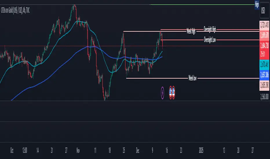 The script identifies the Overnight High (the highest price) and Overnight Low (the lowest price) for a trading instrument during a specified overnight session. It then plots these levels on the chart for reference in subsequent trading sessions.