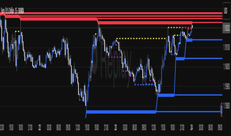 - Sell-side liquidity (SSL) levels and Buy-side liquidity (BSL) levels