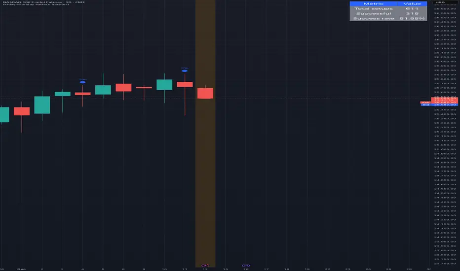 Tests the "Friday-Monday Pattern" popularized by Tom Hougaard / Market Rebellion.