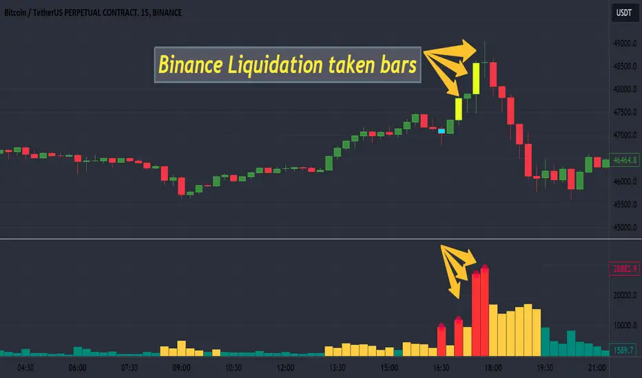 The indicator takes user input as the mean liquidation length over a certain period of time and the option to change bar colors.