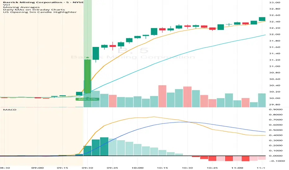 US Opening 5-Minute Candle Highlighter — True RVOL (Two-Tier + Label)