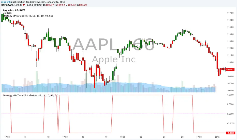 strategy MACD and RSI alert