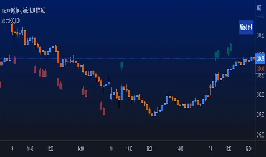 To receive an alert when either condition happens (all majors at high of day or all majors at low of day), click the more (...) icon next to the indicator settings button and click "Add alert on Majors HOD/LOD".
