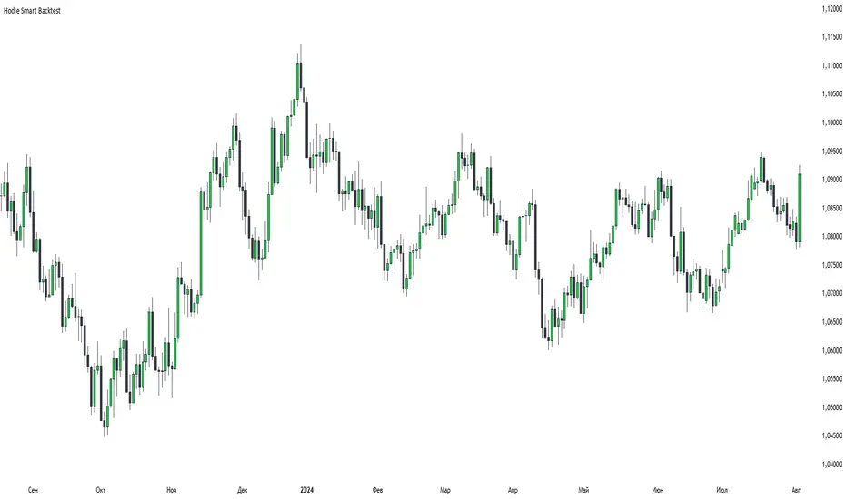 Hodie Smart Backtest — a backtesting indicator that displays only closed candles, designed for accurate strategy testing without hints from higher timeframes or live bars.