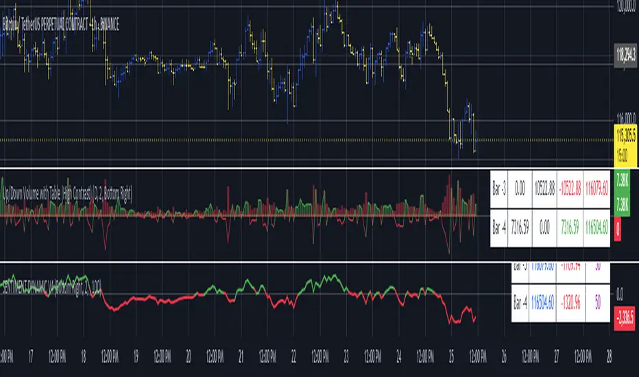 This script gives you a dynamic perspective on market sentiment, adapting to volatility and providing clear, color-coded signals and data for each bar. It’s a useful tool for both trend-following and mean-reversion strategies.
