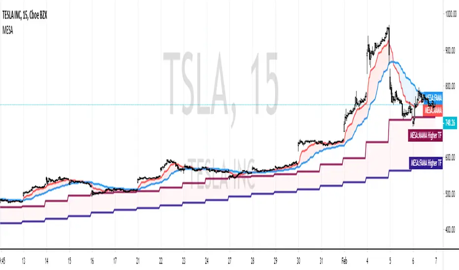 If you want to compare this indicator the current most popular MAMA by LazyBear, you'll notice it often gives buy and sell crosses one bar earlier than theirs.