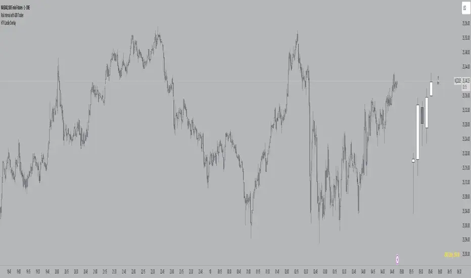 This Pine Script indicator creates a visual overlay of higher timeframe (HTF) candles on your chart. It's a useful tool for multi-timeframe analysis that allows you to see higher timeframe price action context directly on your current chart without having to switch between timeframes.