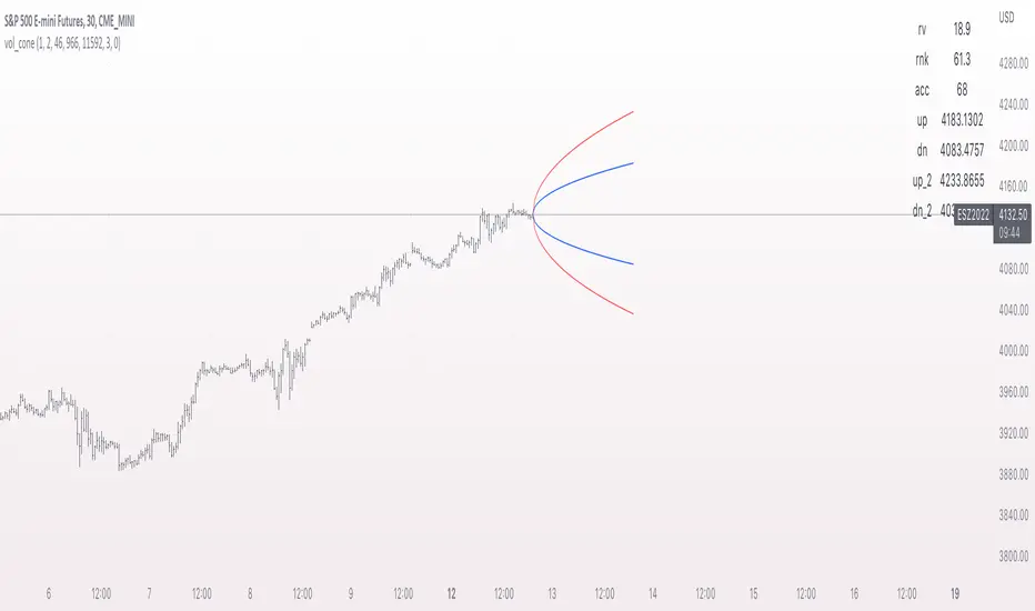 Draws a volatility cone on the chart, using the contract's realized volatility (rv). The inputs are: