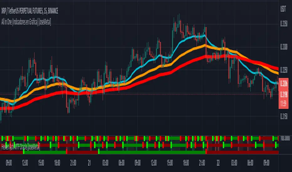 Este indicador muestra un oráculo de velas Heiken Ashi en 3 temporalidades diferentes (MTF).