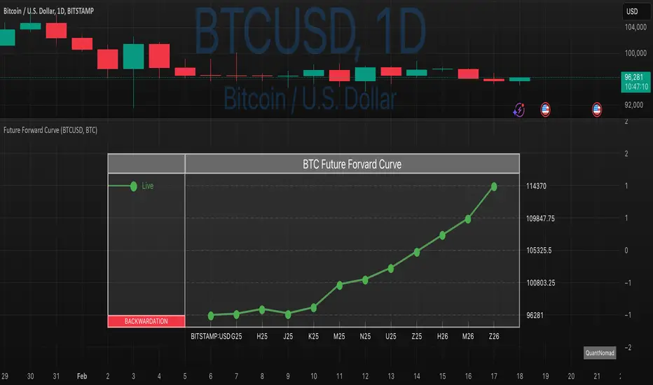 Provide the spot symbol and the futures product root, and the script automatically scans all relevant contracts for you—no more tedious manual searches. The result is a clean, intuitive chart showing the live forward curve in real time.