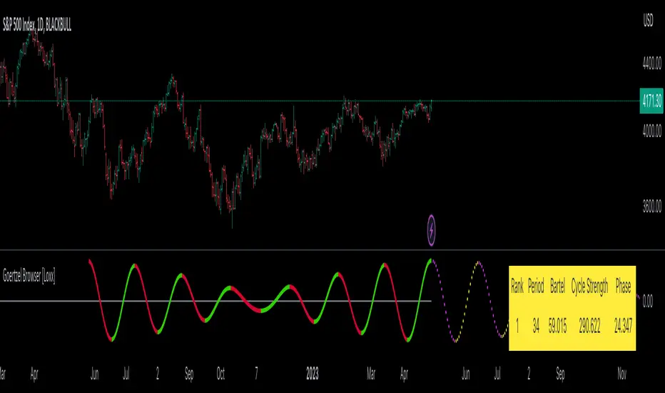 This indicator is a powerful tool that employs the Goertzel algorithm to analyze and visualize the cyclical components within a financial time series. By providing insights into the underlying price movements and their potential future trajectory, the indicator aims to assist traders in making more informed decisions.