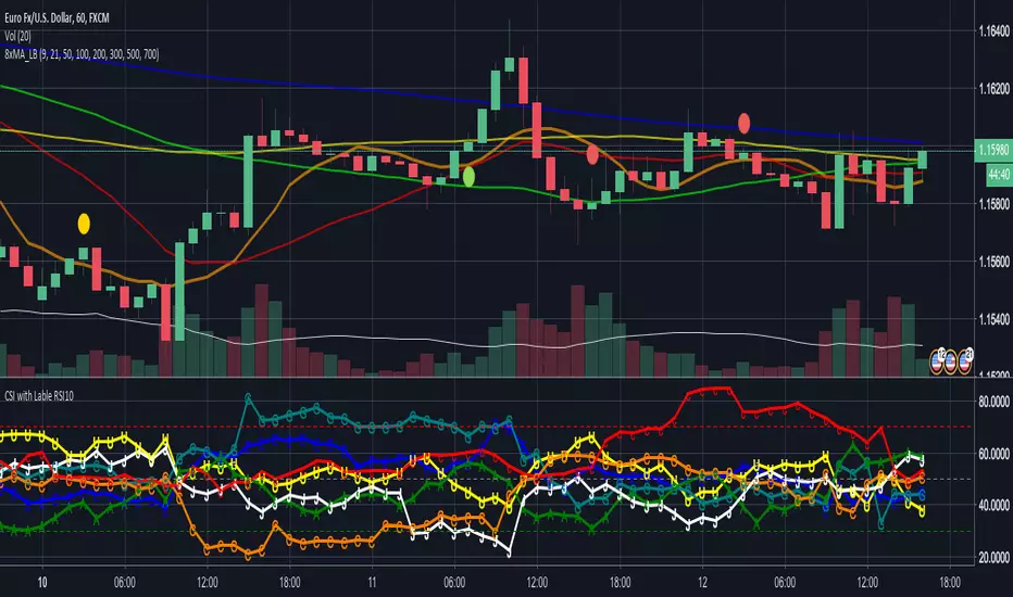 This Indicator shows you the strength of the Currency in comparison for all other Main Currencys at the timeframe you choose.