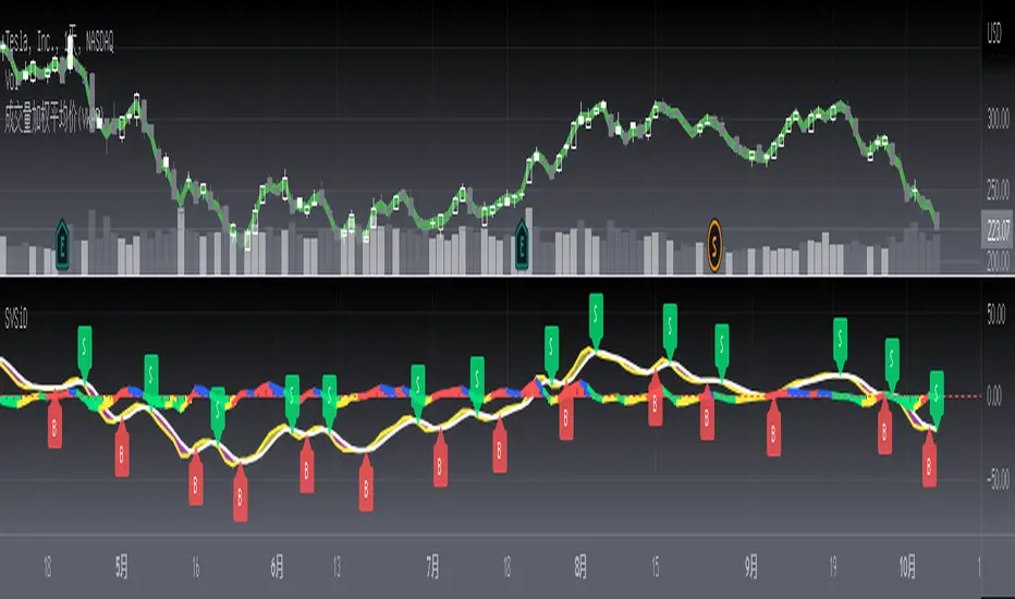 This is a technical indicator for stocks only. Because of the use of TradingView's financial functions, the scope of use is limited to stocks. It will give an error when you use it for other trading pairs. According to if the VWAP is smoothed according to the stock turnover rate, and the angle of the VWAP is calculated to judge the trend. The specific method of use is: the fast line crosses the slow line at a large angle, which can be regarded as a buy intervention point, and the fast line crosses the slow line in a small amount and then steps back on the slow line, which can also be regarded as a buy intervention point. The slow line is the 3-period moving average of the fast line.