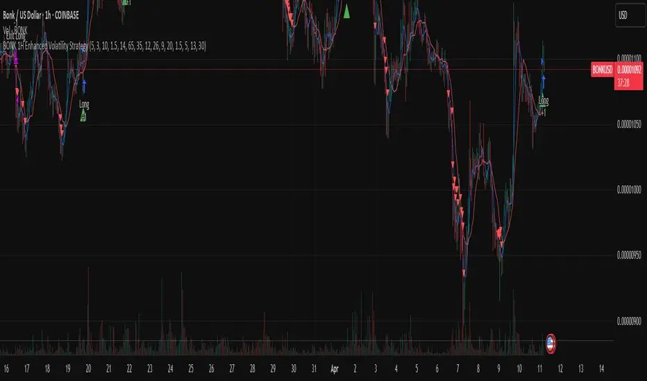 Enhancements and RationaleBased on BONK’s characteristics (high volatility, meme-driven pumps, and sensitivity to volume spikes) and the 1-hour timeframe, I’ve incorporated several improvements to make the strategy more effective:
