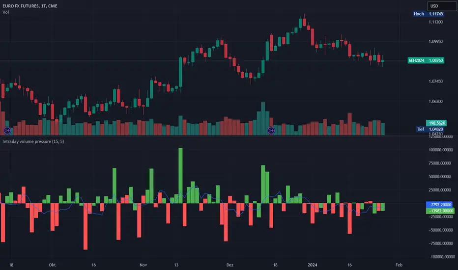 This indicator shows the difference of bullish and bearish trading volume during intraday